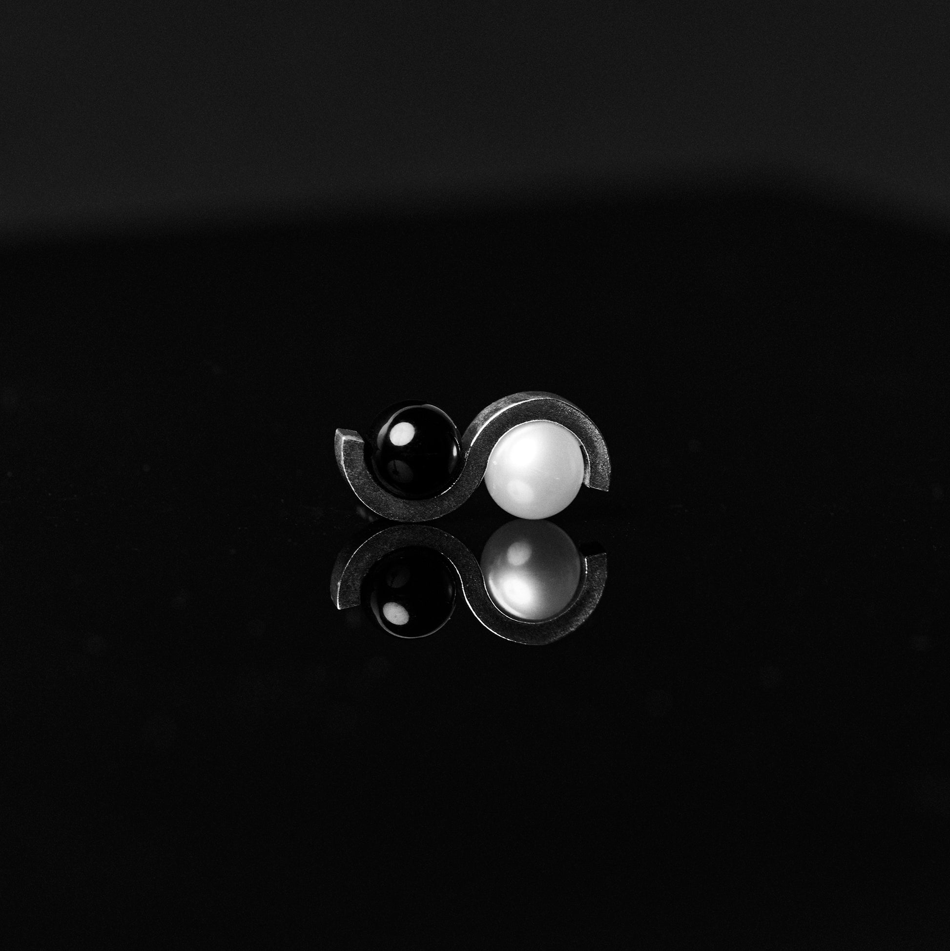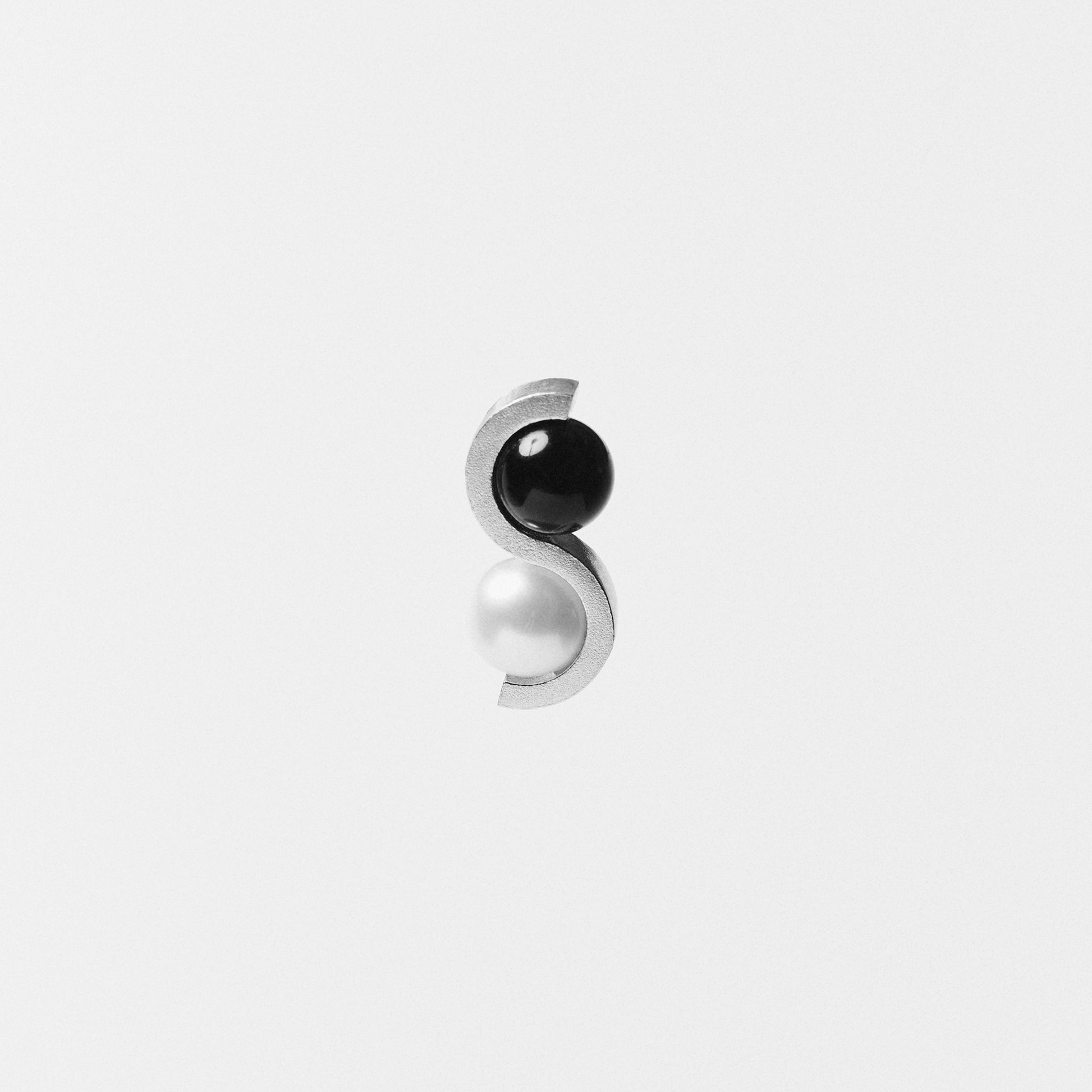 This earring stud is compact yet impactful. The black onyx rests on your ear lobe while the glowing white pearl hangs just below it. This piece can become your everyday companion - accompanying through the day and the night, in all seasons of life.